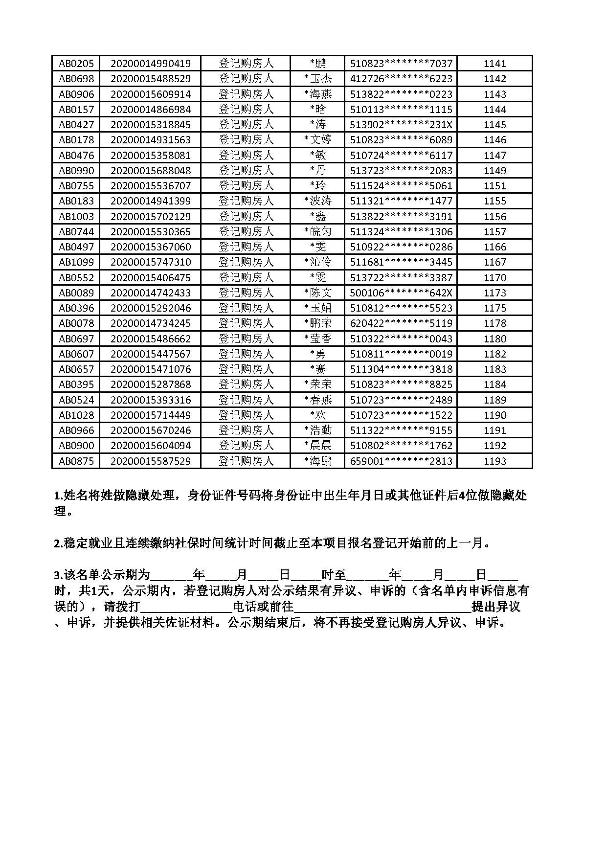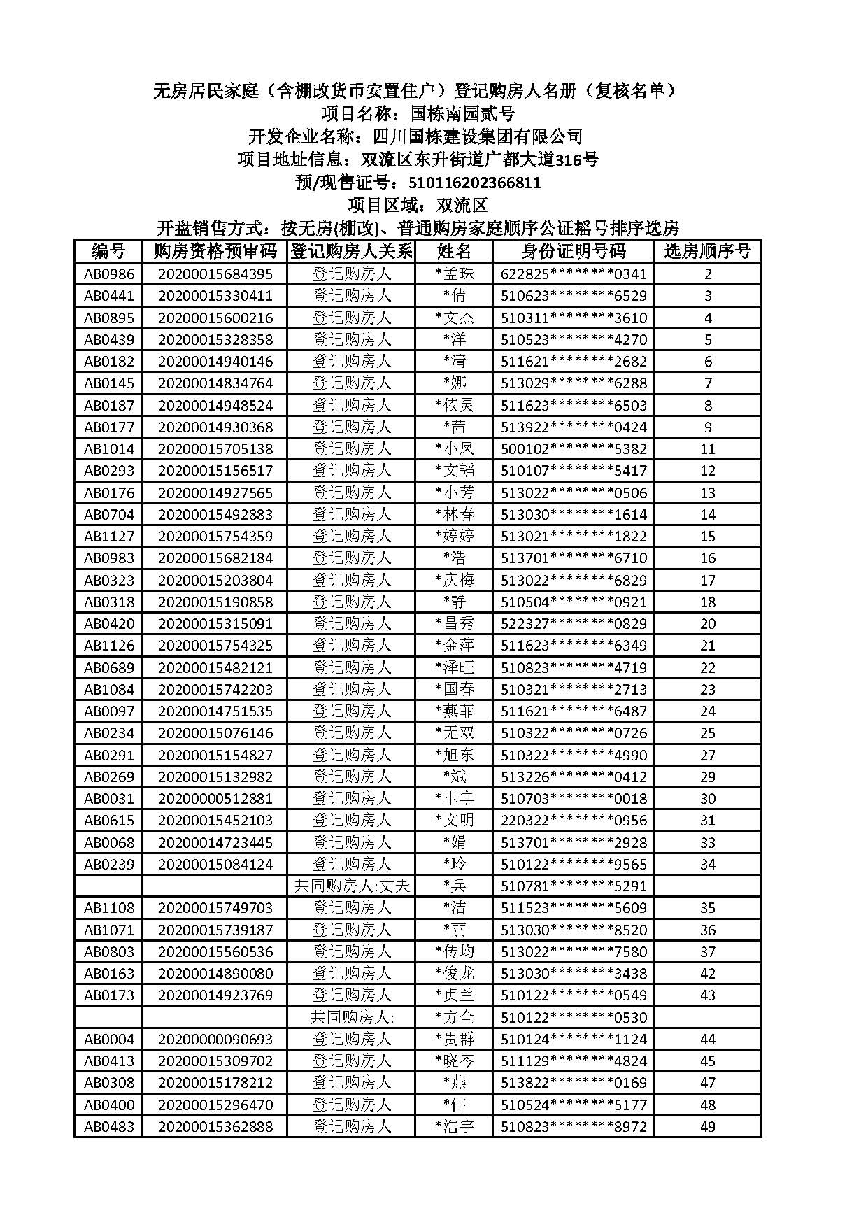 【概要描述】國棟南園貳號 無房居民家庭(含棚改貨幣安置住戶)登記購房人名冊(復核名單)
